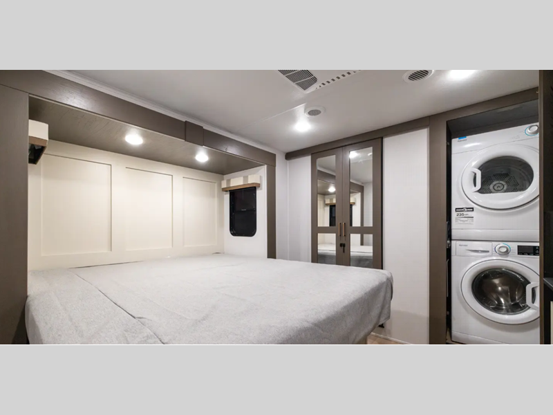 Sleeps 6 Slides 4 Furnace BTU 35000 btu Available Beds King Refrigerator Type 12V Refrigerator Size 16 cu ft Cooktop Burners 4 Number of Awnings 2 LP Tank Capacity 30 lbs Water Heater Type On Demand Tankless AC BTU 27000 btu TV Info LR 65" TV Awning Info 8' 6" and 16' Power w/LED Lights Axle Count 2 Washer/Dryer Available Yes Number of LP Tanks 2 Shower Type Standard Electrical Service 50 amp Similar Floorplans
