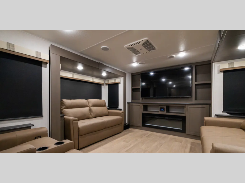 Sleeps 4 Slides 3 Length 35 ft Ext Width 8 ft Ext Height 13 ft 1 in Hitch Weight 2180 lbs Dry Weight 10864 lbs Cargo Capacity 3316 lbs Fresh Water Capacity 64 gals Grey Water Capacity 88 gals Black Water Capacity 44 gals Furnace BTU 35000 btu Available Beds King Refrigerator Type 12V Refrigerator Size 16 cu ft Cooktop Burners 4 Number of Awnings 2 LP Tank Capacity 30 lbs Water Heater Type On Demand Tankless AC BTU 27000 btu TV Info LR 50" TV Awning Info 10' 6" and 16' Power w/LED Lights Axle Count 2 Washer/Dryer Available Yes Number of LP Tanks 2 Shower Type Standard Electrical Service 50 amp Similar Floorplans