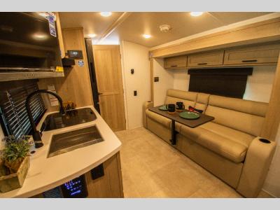 The complete composite wall construction and frameless widows provide a durable and sleek travel trailer you are sure to love. Each model features bigger nitrogen-filled tires and standard solar power that will allow you to go off-grid when the adventure calls for it. A refrigerator also comes standard, along with back-up camera prep, laminated roof, and more at-home comforts. And if you want to go off-grid, optional sunset seeker package is available on select models!