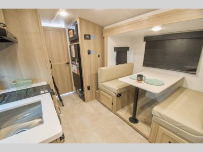 Sleeps 5 Slides 1 Length 21 ft 2 in Ext Width 7 ft 8 in Ext Height 10 ft 4 in Hitch Weight 501 lbs Dry Weight 3843 lbs Cargo Capacity 1155 lbs Fresh Water Capacity 31 gals Grey Water Capacity 27 gals Black Water Capacity 27 gals Furnace BTU 20000 btu Number Of Bunks 2 Available Beds Full Refrigerator Type 12V Convection Cooking Yes Cooktop Burners 3 Number of Awnings 1 LP Tank Capacity 20 lbs Water Heater Type Gas/Electric AC BTU 13500 btu TV Info 12V Smart TV Awning Info 14' Power Axle Count 1 Number of LP Tanks 2 Shower Type Standard Solar Wattage 200 watts Similar Travel Trailer Floorplans