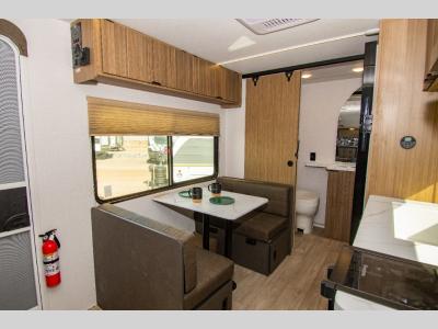 This travel trailer with a full rear bath and versatile sleeping space is your ticket to fun and adventure. While you're putting out the 12' power awning, you can grab the lawn chairs from the full pass-through storage. There is a two burner cooktop and a microwave oven to prepare your meals in, and a booth dinette to dine at. You'll love the RV queen Murphy bed to sleep on at night, and the sofa with storage to relax on during the day!