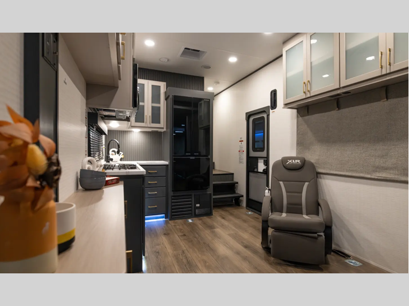 Sleeps 7 Slides 2 Ext Width 8 ft 5 in Fuel Capacity 30 gals Number Of Bunks 1 Available Beds Queen Refrigerator Type 12V Cooktop Burners 3 Shower Size 30" x 36" Number of Awnings 1 Garage Size 13 ft 6 in Water Heater Type Tankless AC BTU 15000 btu Awning Info 21' Power Axle Count 2 Shower Type Tub/Shower Combo Electrical Service 50 amp Similar Floorplans