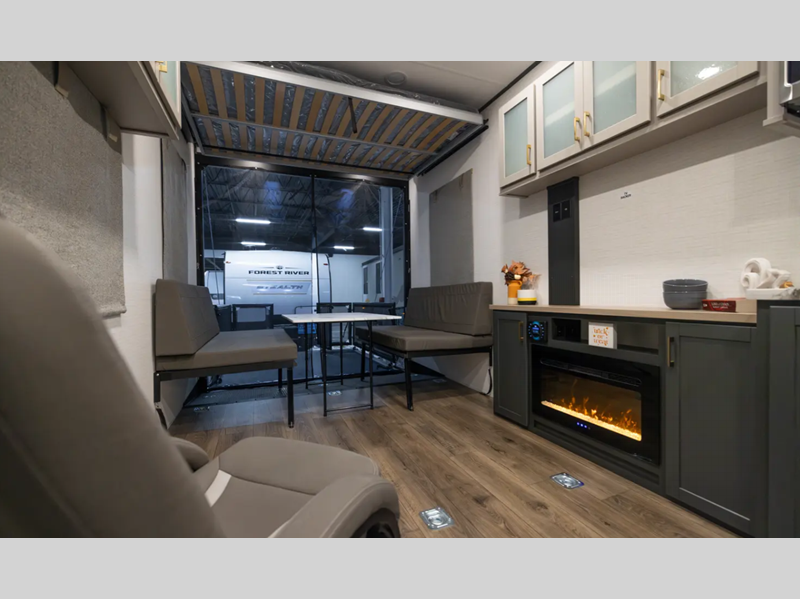 There is a rear beaver tail frame, a docking station, and a magnetic screen wall so you can let the fresh air in without letting the bugs in. You will feel right at home with decorative kitchen backsplash and LED lights, and there is a tankless water heater to provide endless hot showers after trail riding. The Alumifoil insulated enclosed underbelly will help extend your camping season, and the patio railing kit will let you enjoy more time outdoors once the toys are unloaded.