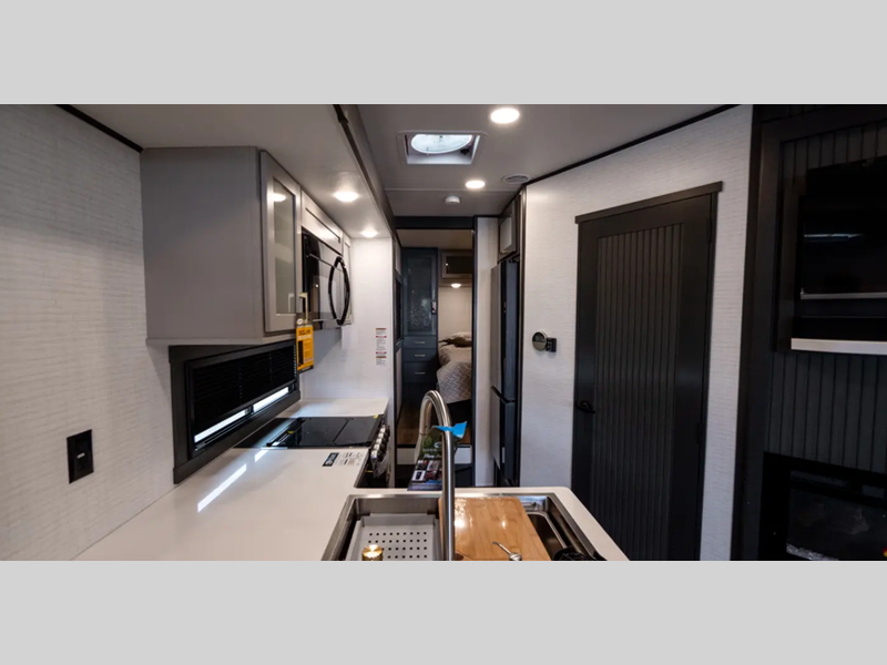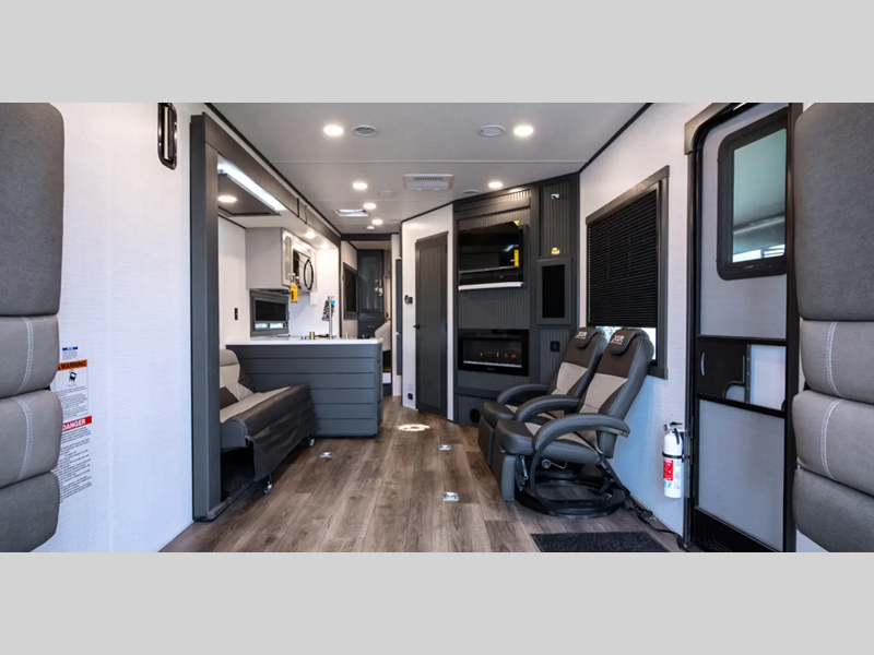 The exterior features a gel-coated fiberglass, a fully enclosed "Body-Armor" underbelly, and full LED rear taillights. The garage is spacious so that you can haul plenty of gear, and the wider interiors offer a comfortable living space. The Dexter EZ-Lube axles are the best in the business, and the MORryde CRE3000 suspension enhancement is going to make all roads smooth.