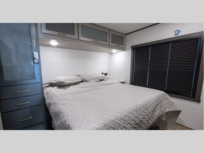 Sleeps 7 Slides 1 Length 35 ft 9 in Ext Width 8 ft 5 in Ext Height 12 ft 4 in Hitch Weight 1665 lbs Dry Weight 9274 lbs Cargo Capacity 4391 lbs Fresh Water Capacity 100 gals Grey Water Capacity 72 gals Black Water Capacity 30 gals Tire Size 16" Fuel Capacity 30 gals Number Of Bunks 1 Available Beds Queen Refrigerator Type 12V French Door Refrigerator Size 10.6 cu ft Cooktop Burners 3 Number of Awnings 1 LP Tank Capacity 30 lbs AC BTU 15000 btu TV Info LR 40" TV Awning Info 21' Electric with LED Lights Axle Count 2 Number of LP Tanks 2 Shower Type Standard Electrical Service 50 amp Similar Floorplans
