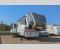 For the couple that loves to travel, you will truly enjoy this spacious fifth wheel featuring triple slides with dual opposing in the main combined kitchen and living area. Here you can entertain friends, even overnight, thanks to the hide-a-bed sofa sleeper. A free standing dinette and four chairs makes dining feel like home, and you will love the spacious kitchen for cooking with a large center island including prep space next to the double sink. A side hutch offers space for dishes, or place for other small appliances to be left out. The master bedroom is just beyond the spacious bath on your left up the steps and behind a space saving sliding barn style door. You will sleep comfortably on the king bed that slides out to provide even more floor space for getting dressed, and there is also a prepped area for adding a stackable washer and dryer if you choose. The bath provides a large shower and vanity with dual sinks so two can easily get ready at once!